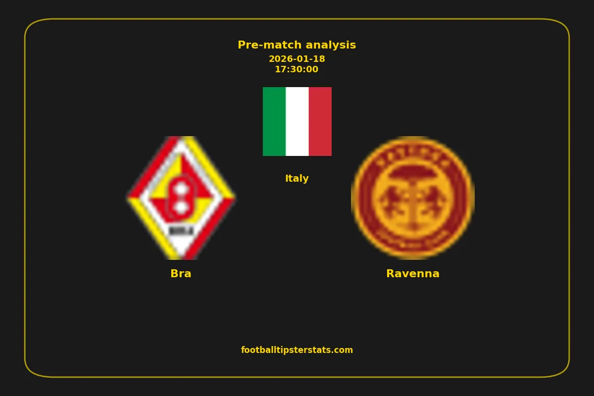 Analyzing the recent performance of Bra and Ravenna in Italy, we can derive insights that may inform future match predictions. By examining their individual game histories, head-to-head encounters, and overall trends, we can identify patterns that highlight strengths and weaknesses for both teams. This comprehensive review aims to provide a clearer understanding of their competitive dynamics and potential outcomes in upcoming fixtures.This pre-match analysis covers the upcoming fixture between Bra and Ravenna. Below you’ll find a detailed breakdown of both teams’ recent form, goal statistics, and head-to-head performance. These insights provide a clear picture of current momentum and can be valuable for match forecasting, tactical evaluation, or betting analysis. Please note that these suggestions are based on historical data and trends. While they provide valuable insights, actual match outcomes can be influenced by various unpredictable factors. Always consider multiple aspects before making any decisions based on these analyses.