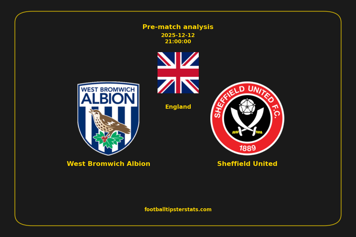 Analyzing the recent performance of West Bromwich Albion and Sheffield United in England, we can derive insights that may inform future match predictions. By examining their individual game histories, head-to-head encounters, and overall trends, we can identify patterns that highlight strengths and weaknesses for both teams. This comprehensive review aims to provide a clearer understanding of their competitive dynamics and potential outcomes in upcoming fixtures.This pre-match analysis covers the upcoming fixture between West Bromwich Albion and Sheffield United. Below you’ll find a detailed breakdown of both teams’ recent form, goal statistics, and head-to-head performance. These insights provide a clear picture of current momentum and can be valuable for match forecasting, tactical evaluation, or betting analysis. Please note that these suggestions are based on historical data and trends. While they provide valuable insights, actual match outcomes can be influenced by various unpredictable factors. Always consider multiple aspects before making any decisions based on these analyses.
