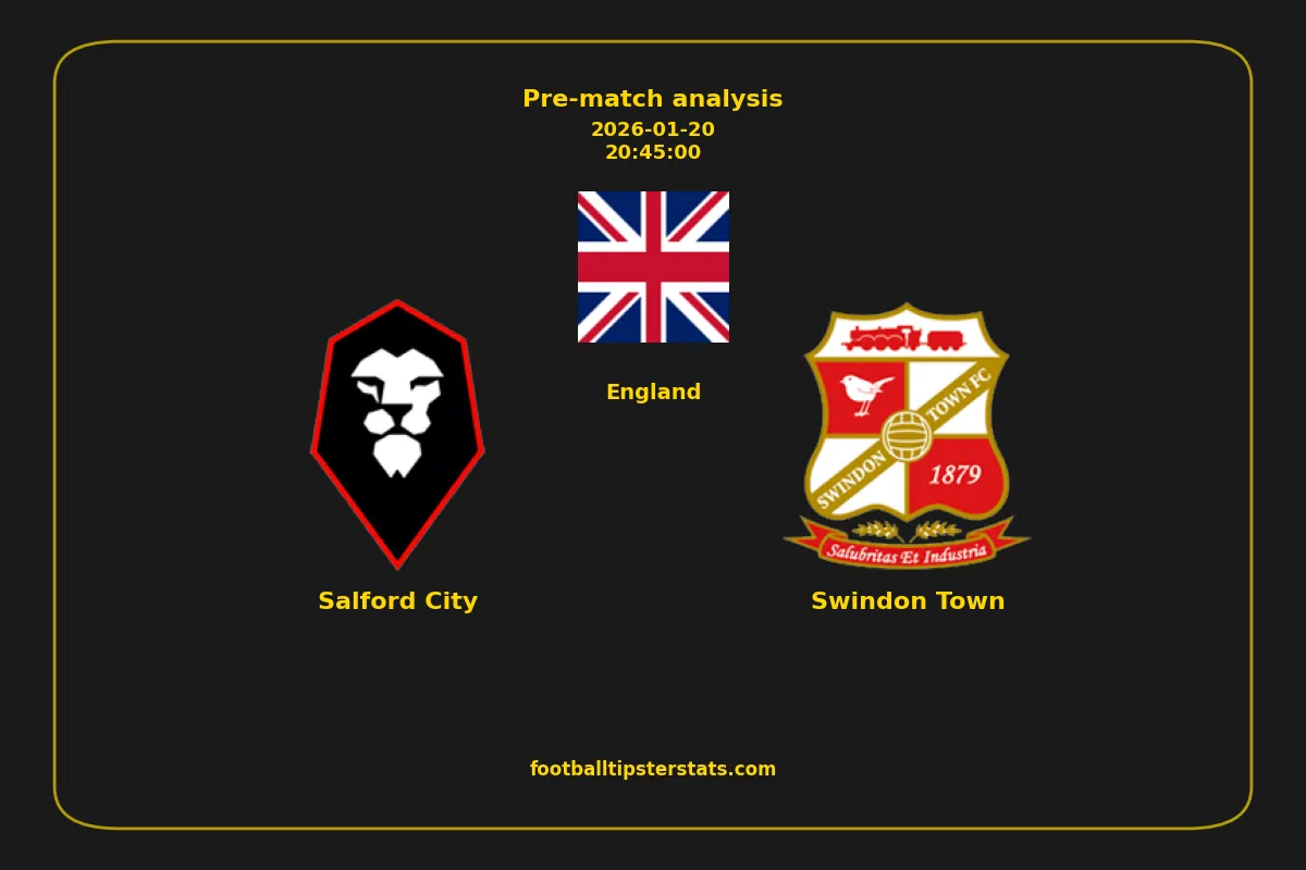 Analyzing the recent performance of Salford City and Swindon Town in England, we can derive insights that may inform future match predictions. By examining their individual game histories, head-to-head encounters, and overall trends, we can identify patterns that highlight strengths and weaknesses for both teams. This comprehensive review aims to provide a clearer understanding of their competitive dynamics and potential outcomes in upcoming fixtures.This pre-match analysis covers the upcoming fixture between Salford City and Swindon Town. Below you’ll find a detailed breakdown of both teams’ recent form, goal statistics, and head-to-head performance. These insights provide a clear picture of current momentum and can be valuable for match forecasting, tactical evaluation, or betting analysis. Please note that these suggestions are based on historical data and trends. While they provide valuable insights, actual match outcomes can be influenced by various unpredictable factors. Always consider multiple aspects before making any decisions based on these analyses.