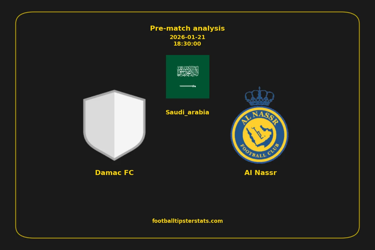 Analyzing the recent performance of Damac FC and Al Nassr in Saudi_arabia, we can derive insights that may inform future match predictions. By examining their individual game histories, head-to-head encounters, and overall trends, we can identify patterns that highlight strengths and weaknesses for both teams. This comprehensive review aims to provide a clearer understanding of their competitive dynamics and potential outcomes in upcoming fixtures.This pre-match analysis covers the upcoming fixture between Damac FC and Al Nassr. Below you’ll find a detailed breakdown of both teams’ recent form, goal statistics, and head-to-head performance. These insights provide a clear picture of current momentum and can be valuable for match forecasting, tactical evaluation, or betting analysis. Please note that these suggestions are based on historical data and trends. While they provide valuable insights, actual match outcomes can be influenced by various unpredictable factors. Always consider multiple aspects before making any decisions based on these analyses.
