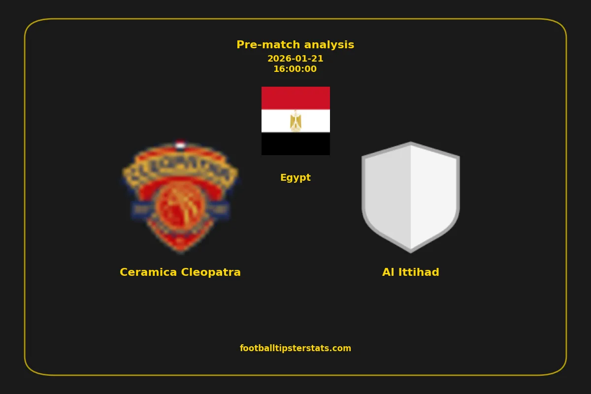 Analyzing the recent performance of Ceramica Cleopatra and Al Ittihad in Egypt, we can derive insights that may inform future match predictions. By examining their individual game histories, head-to-head encounters, and overall trends, we can identify patterns that highlight strengths and weaknesses for both teams. This comprehensive review aims to provide a clearer understanding of their competitive dynamics and potential outcomes in upcoming fixtures.This pre-match analysis covers the upcoming fixture between Ceramica Cleopatra and Al Ittihad. Below you’ll find a detailed breakdown of both teams’ recent form, goal statistics, and head-to-head performance. These insights provide a clear picture of current momentum and can be valuable for match forecasting, tactical evaluation, or betting analysis. Please note that these suggestions are based on historical data and trends. While they provide valuable insights, actual match outcomes can be influenced by various unpredictable factors. Always consider multiple aspects before making any decisions based on these analyses.