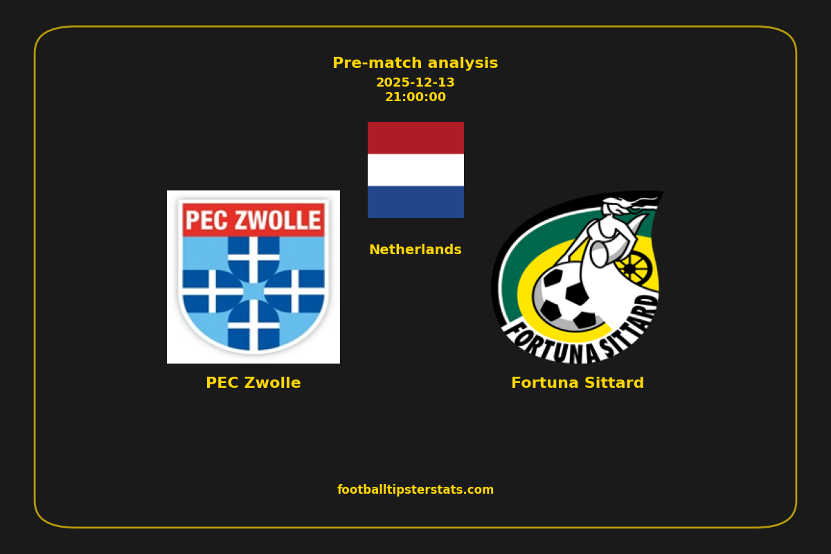 Analyzing the recent performance of PEC Zwolle and Fortuna Sittard in Netherlands, we can derive insights that may inform future match predictions. By examining their individual game histories, head-to-head encounters, and overall trends, we can identify patterns that highlight strengths and weaknesses for both teams. This comprehensive review aims to provide a clearer understanding of their competitive dynamics and potential outcomes in upcoming fixtures.This pre-match analysis covers the upcoming fixture between PEC Zwolle and Fortuna Sittard. Below you’ll find a detailed breakdown of both teams’ recent form, goal statistics, and head-to-head performance. These insights provide a clear picture of current momentum and can be valuable for match forecasting, tactical evaluation, or betting analysis. Please note that these suggestions are based on historical data and trends. While they provide valuable insights, actual match outcomes can be influenced by various unpredictable factors. Always consider multiple aspects before making any decisions based on these analyses.