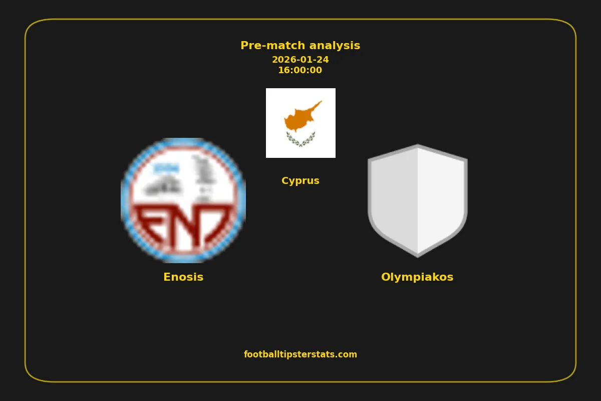 Analyzing the recent performance of Enosis and Olympiakos in Cyprus, we can derive insights that may inform future match predictions. By examining their individual game histories, head-to-head encounters, and overall trends, we can identify patterns that highlight strengths and weaknesses for both teams. This comprehensive review aims to provide a clearer understanding of their competitive dynamics and potential outcomes in upcoming fixtures.This pre-match analysis covers the upcoming fixture between Enosis and Olympiakos. Below you’ll find a detailed breakdown of both teams’ recent form, goal statistics, and head-to-head performance. These insights provide a clear picture of current momentum and can be valuable for match forecasting, tactical evaluation, or betting analysis. Please note that these suggestions are based on historical data and trends. While they provide valuable insights, actual match outcomes can be influenced by various unpredictable factors. Always consider multiple aspects before making any decisions based on these analyses.
