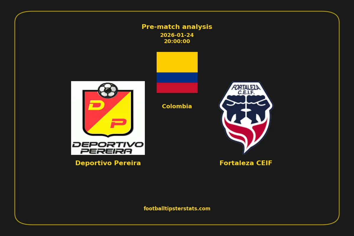 Analyzing the recent performance of Deportivo Pereira and Fortaleza CEIF in Colombia, we can derive insights that may inform future match predictions. By examining their individual game histories, head-to-head encounters, and overall trends, we can identify patterns that highlight strengths and weaknesses for both teams. This comprehensive review aims to provide a clearer understanding of their competitive dynamics and potential outcomes in upcoming fixtures.This pre-match analysis covers the upcoming fixture between Deportivo Pereira and Fortaleza CEIF. Below you’ll find a detailed breakdown of both teams’ recent form, goal statistics, and head-to-head performance. These insights provide a clear picture of current momentum and can be valuable for match forecasting, tactical evaluation, or betting analysis. Please note that these suggestions are based on historical data and trends. While they provide valuable insights, actual match outcomes can be influenced by various unpredictable factors. Always consider multiple aspects before making any decisions based on these analyses.