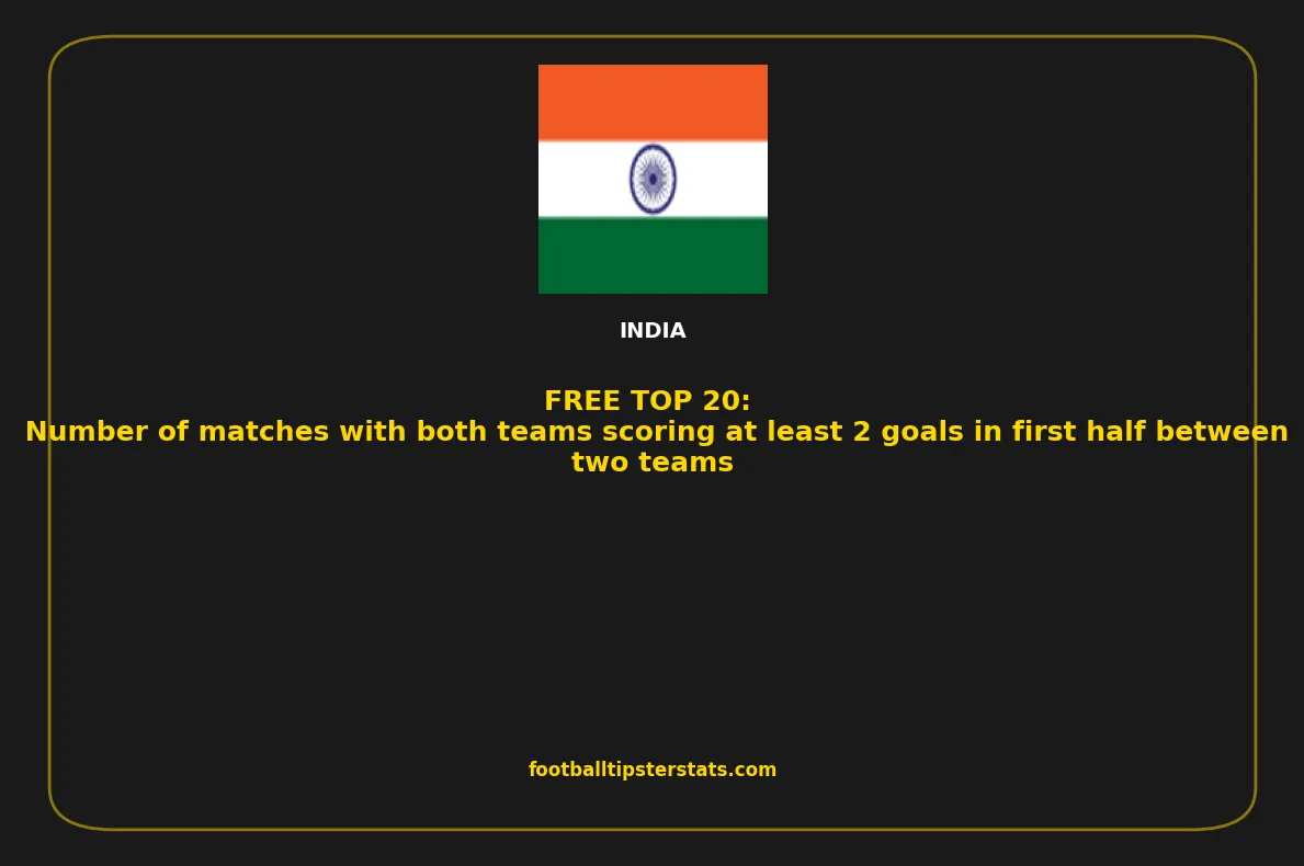 Here is a detailed overview of the teams with the highest number of matches with both teams scoring at least 2 goals in first half between two teams in India. This list highlights clubs that consistently produce high-scoring games, based on recent statistical performance. Whether you're analyzing trends, preparing betting strategies, or simply exploring offensive team profiles, these numbers offer a clear insight into which teams generate the most goal-rich matches.