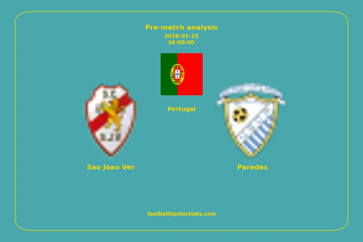 Analyzing the recent performance of Sao Joao Ver and Paredes in Portugal, we can derive insights that may inform future match predictions. By examining their individual game histories, head-to-head encounters, and overall trends, we can identify patterns that highlight strengths and weaknesses for both teams. This comprehensive review aims to provide a clearer understanding of their competitive dynamics and potential outcomes in upcoming fixtures.This pre-match analysis covers the upcoming fixture between Sao Joao Ver and Paredes. Below you’ll find a detailed breakdown of both teams’ recent form, goal statistics, and head-to-head performance. These insights provide a clear picture of current momentum and can be valuable for match forecasting, tactical evaluation, or betting analysis. Please note that these suggestions are based on historical data and trends. While they provide valuable insights, actual match outcomes can be influenced by various unpredictable factors. Always consider multiple aspects before making any decisions based on these analyses.
