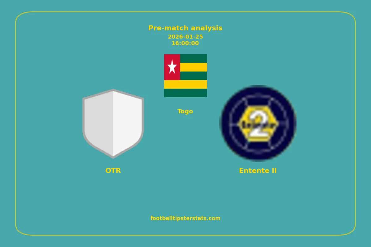 Analyzing the recent performance of OTR and Entente II in Togo, we can derive insights that may inform future match predictions. By examining their individual game histories, head-to-head encounters, and overall trends, we can identify patterns that highlight strengths and weaknesses for both teams. This comprehensive review aims to provide a clearer understanding of their competitive dynamics and potential outcomes in upcoming fixtures.This pre-match analysis covers the upcoming fixture between OTR and Entente II. Below you’ll find a detailed breakdown of both teams’ recent form, goal statistics, and head-to-head performance. These insights provide a clear picture of current momentum and can be valuable for match forecasting, tactical evaluation, or betting analysis. Please note that these suggestions are based on historical data and trends. While they provide valuable insights, actual match outcomes can be influenced by various unpredictable factors. Always consider multiple aspects before making any decisions based on these analyses.