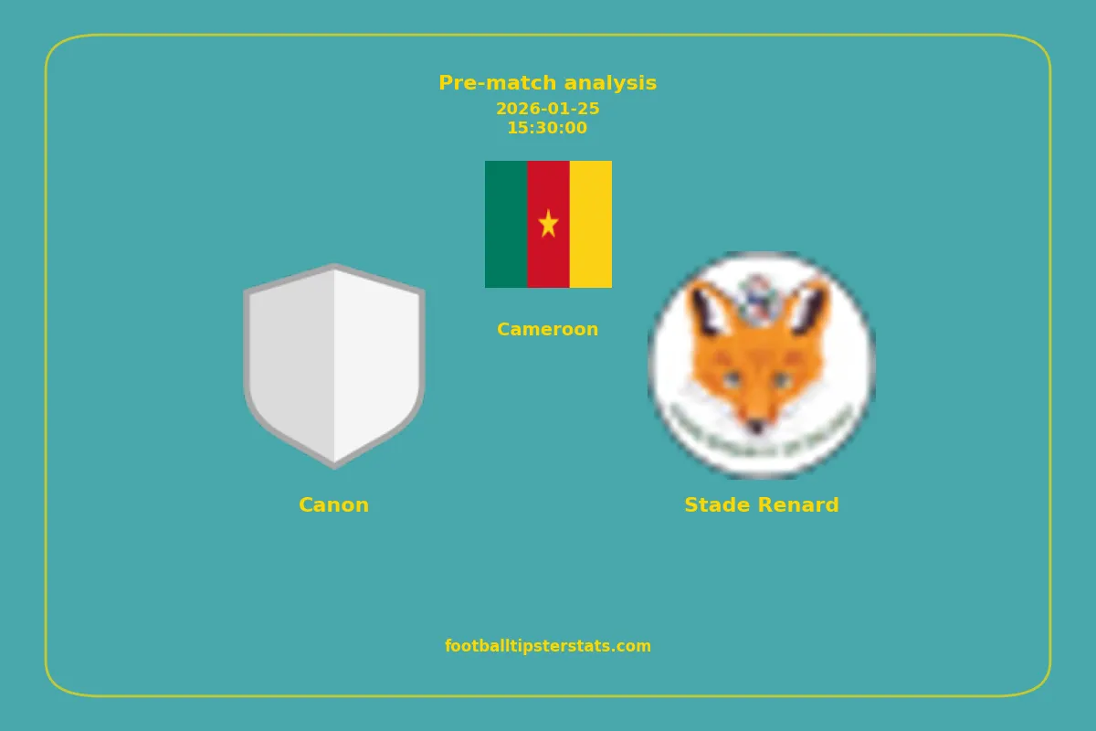 Analyzing the recent performance of Canon and Stade Renard in Cameroon, we can derive insights that may inform future match predictions. By examining their individual game histories, head-to-head encounters, and overall trends, we can identify patterns that highlight strengths and weaknesses for both teams. This comprehensive review aims to provide a clearer understanding of their competitive dynamics and potential outcomes in upcoming fixtures.This pre-match analysis covers the upcoming fixture between Canon and Stade Renard. Below you’ll find a detailed breakdown of both teams’ recent form, goal statistics, and head-to-head performance. These insights provide a clear picture of current momentum and can be valuable for match forecasting, tactical evaluation, or betting analysis. Please note that these suggestions are based on historical data and trends. While they provide valuable insights, actual match outcomes can be influenced by various unpredictable factors. Always consider multiple aspects before making any decisions based on these analyses.