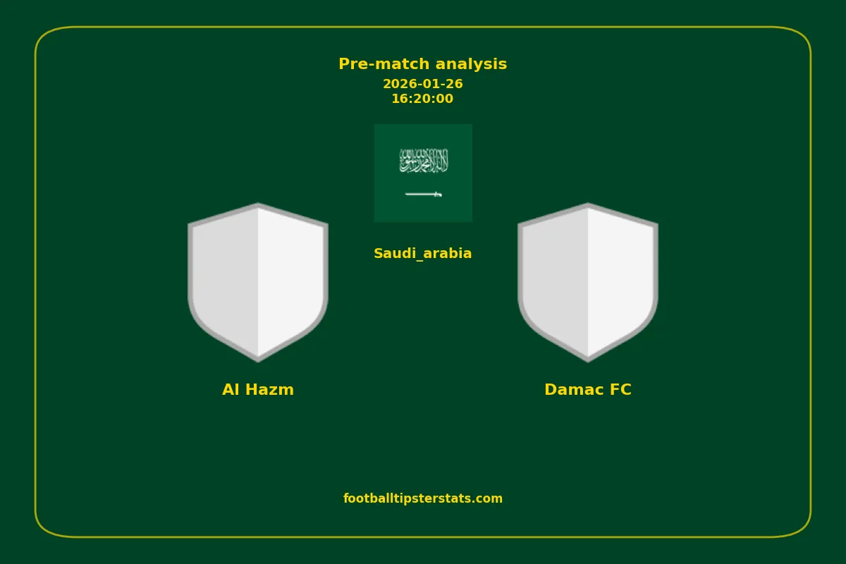 Analyzing the recent performance of Al Hazm and Damac FC in Saudi_arabia, we can derive insights that may inform future match predictions. By examining their individual game histories, head-to-head encounters, and overall trends, we can identify patterns that highlight strengths and weaknesses for both teams. This comprehensive review aims to provide a clearer understanding of their competitive dynamics and potential outcomes in upcoming fixtures.This pre-match analysis covers the upcoming fixture between Al Hazm and Damac FC. Below you’ll find a detailed breakdown of both teams’ recent form, goal statistics, and head-to-head performance. These insights provide a clear picture of current momentum and can be valuable for match forecasting, tactical evaluation, or betting analysis. Please note that these suggestions are based on historical data and trends. While they provide valuable insights, actual match outcomes can be influenced by various unpredictable factors. Always consider multiple aspects before making any decisions based on these analyses.