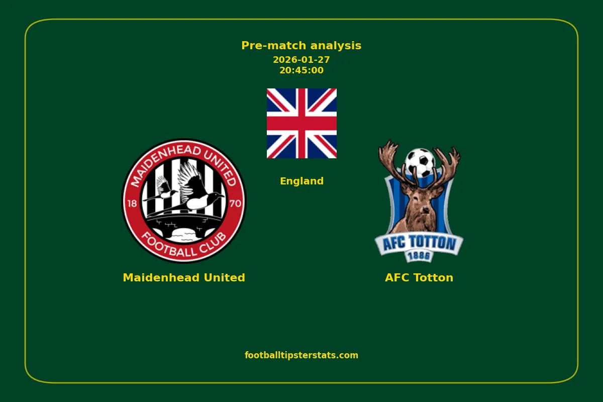 Analyzing the recent performance of Maidenhead United and AFC Totton in England, we can derive insights that may inform future match predictions. By examining their individual game histories, head-to-head encounters, and overall trends, we can identify patterns that highlight strengths and weaknesses for both teams. This comprehensive review aims to provide a clearer understanding of their competitive dynamics and potential outcomes in upcoming fixtures.This pre-match analysis covers the upcoming fixture between Maidenhead United and AFC Totton. Below you’ll find a detailed breakdown of both teams’ recent form, goal statistics, and head-to-head performance. These insights provide a clear picture of current momentum and can be valuable for match forecasting, tactical evaluation, or betting analysis. Please note that these suggestions are based on historical data and trends. While they provide valuable insights, actual match outcomes can be influenced by various unpredictable factors. Always consider multiple aspects before making any decisions based on these analyses.