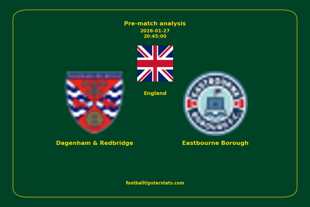 Analyzing the recent performance of Dagenham & Redbridge and Eastbourne Borough in England, we can derive insights that may inform future match predictions. By examining their individual game histories, head-to-head encounters, and overall trends, we can identify patterns that highlight strengths and weaknesses for both teams. This comprehensive review aims to provide a clearer understanding of their competitive dynamics and potential outcomes in upcoming fixtures.This pre-match analysis covers the upcoming fixture between Dagenham & Redbridge and Eastbourne Borough. Below you’ll find a detailed breakdown of both teams’ recent form, goal statistics, and head-to-head performance. These insights provide a clear picture of current momentum and can be valuable for match forecasting, tactical evaluation, or betting analysis. Please note that these suggestions are based on historical data and trends. While they provide valuable insights, actual match outcomes can be influenced by various unpredictable factors. Always consider multiple aspects before making any decisions based on these analyses.
