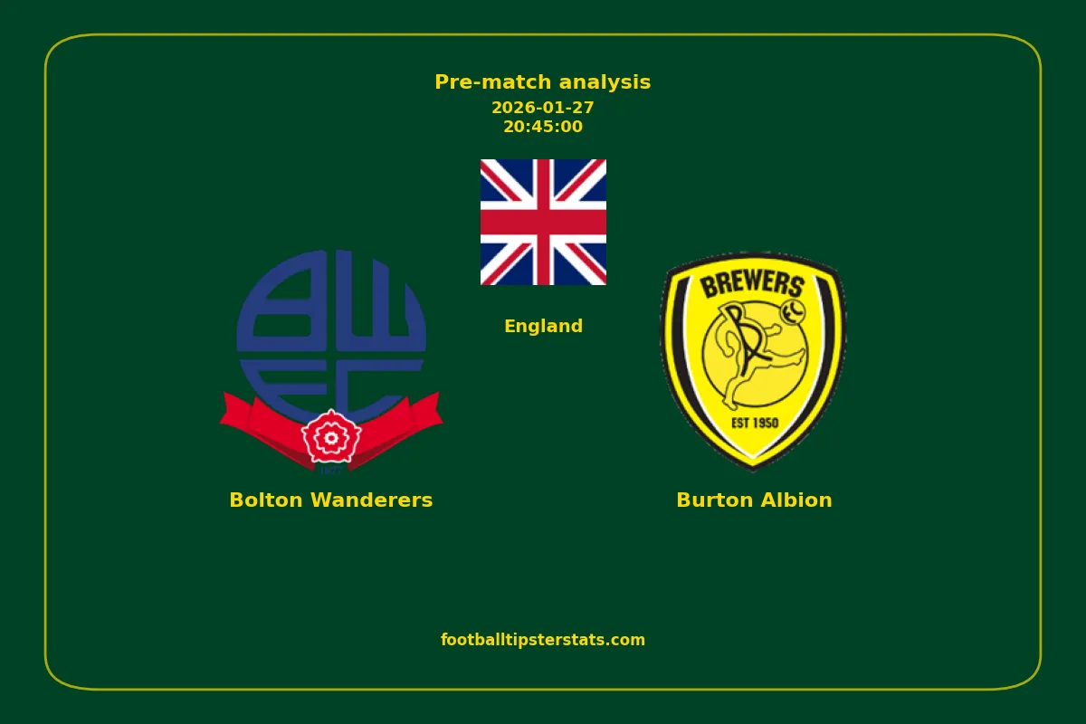 Analyzing the recent performance of Bolton Wanderers and Burton Albion in England, we can derive insights that may inform future match predictions. By examining their individual game histories, head-to-head encounters, and overall trends, we can identify patterns that highlight strengths and weaknesses for both teams. This comprehensive review aims to provide a clearer understanding of their competitive dynamics and potential outcomes in upcoming fixtures.This pre-match analysis covers the upcoming fixture between Bolton Wanderers and Burton Albion. Below you’ll find a detailed breakdown of both teams’ recent form, goal statistics, and head-to-head performance. These insights provide a clear picture of current momentum and can be valuable for match forecasting, tactical evaluation, or betting analysis. Please note that these suggestions are based on historical data and trends. While they provide valuable insights, actual match outcomes can be influenced by various unpredictable factors. Always consider multiple aspects before making any decisions based on these analyses.