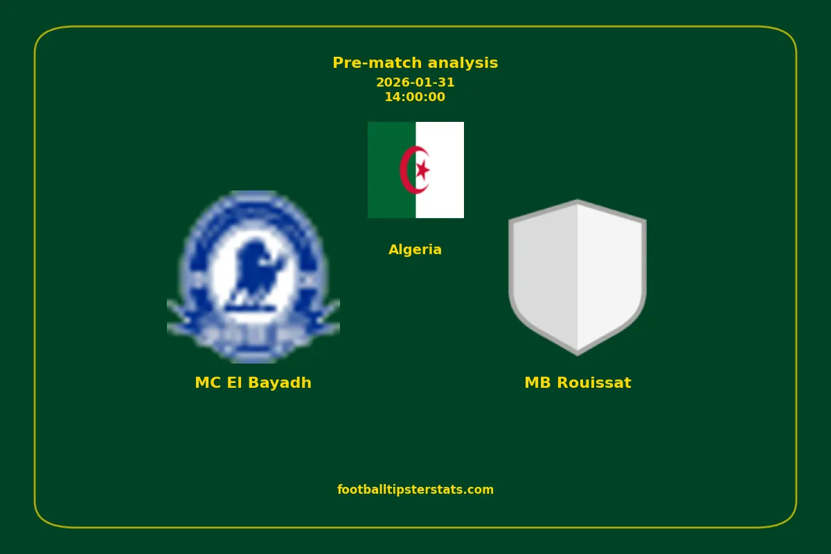 Analyzing the recent performance of MC El Bayadh and MB Rouissat in Algeria, we can derive insights that may inform future match predictions. By examining their individual game histories, head-to-head encounters, and overall trends, we can identify patterns that highlight strengths and weaknesses for both teams. This comprehensive review aims to provide a clearer understanding of their competitive dynamics and potential outcomes in upcoming fixtures.This pre-match analysis covers the upcoming fixture between MC El Bayadh and MB Rouissat. Below you’ll find a detailed breakdown of both teams’ recent form, goal statistics, and head-to-head performance. These insights provide a clear picture of current momentum and can be valuable for match forecasting, tactical evaluation, or betting analysis. Please note that these suggestions are based on historical data and trends. While they provide valuable insights, actual match outcomes can be influenced by various unpredictable factors. Always consider multiple aspects before making any decisions based on these analyses.