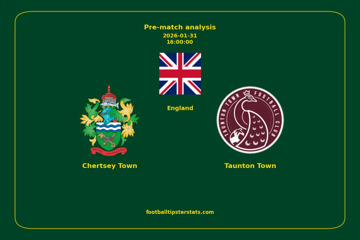 Analyzing the recent performance of Chertsey Town and Taunton Town in England, we can derive insights that may inform future match predictions. By examining their individual game histories, head-to-head encounters, and overall trends, we can identify patterns that highlight strengths and weaknesses for both teams. This comprehensive review aims to provide a clearer understanding of their competitive dynamics and potential outcomes in upcoming fixtures.This pre-match analysis covers the upcoming fixture between Chertsey Town and Taunton Town. Below you’ll find a detailed breakdown of both teams’ recent form, goal statistics, and head-to-head performance. These insights provide a clear picture of current momentum and can be valuable for match forecasting, tactical evaluation, or betting analysis. Please note that these suggestions are based on historical data and trends. While they provide valuable insights, actual match outcomes can be influenced by various unpredictable factors. Always consider multiple aspects before making any decisions based on these analyses.