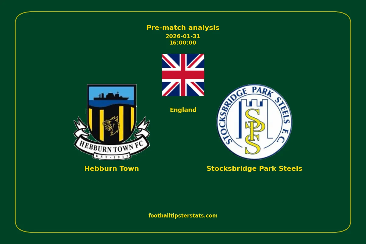 Analyzing the recent performance of Hebburn Town and Stocksbridge Park Steels in England, we can derive insights that may inform future match predictions. By examining their individual game histories, head-to-head encounters, and overall trends, we can identify patterns that highlight strengths and weaknesses for both teams. This comprehensive review aims to provide a clearer understanding of their competitive dynamics and potential outcomes in upcoming fixtures.This pre-match analysis covers the upcoming fixture between Hebburn Town and Stocksbridge Park Steels. Below you’ll find a detailed breakdown of both teams’ recent form, goal statistics, and head-to-head performance. These insights provide a clear picture of current momentum and can be valuable for match forecasting, tactical evaluation, or betting analysis. Please note that these suggestions are based on historical data and trends. While they provide valuable insights, actual match outcomes can be influenced by various unpredictable factors. Always consider multiple aspects before making any decisions based on these analyses.