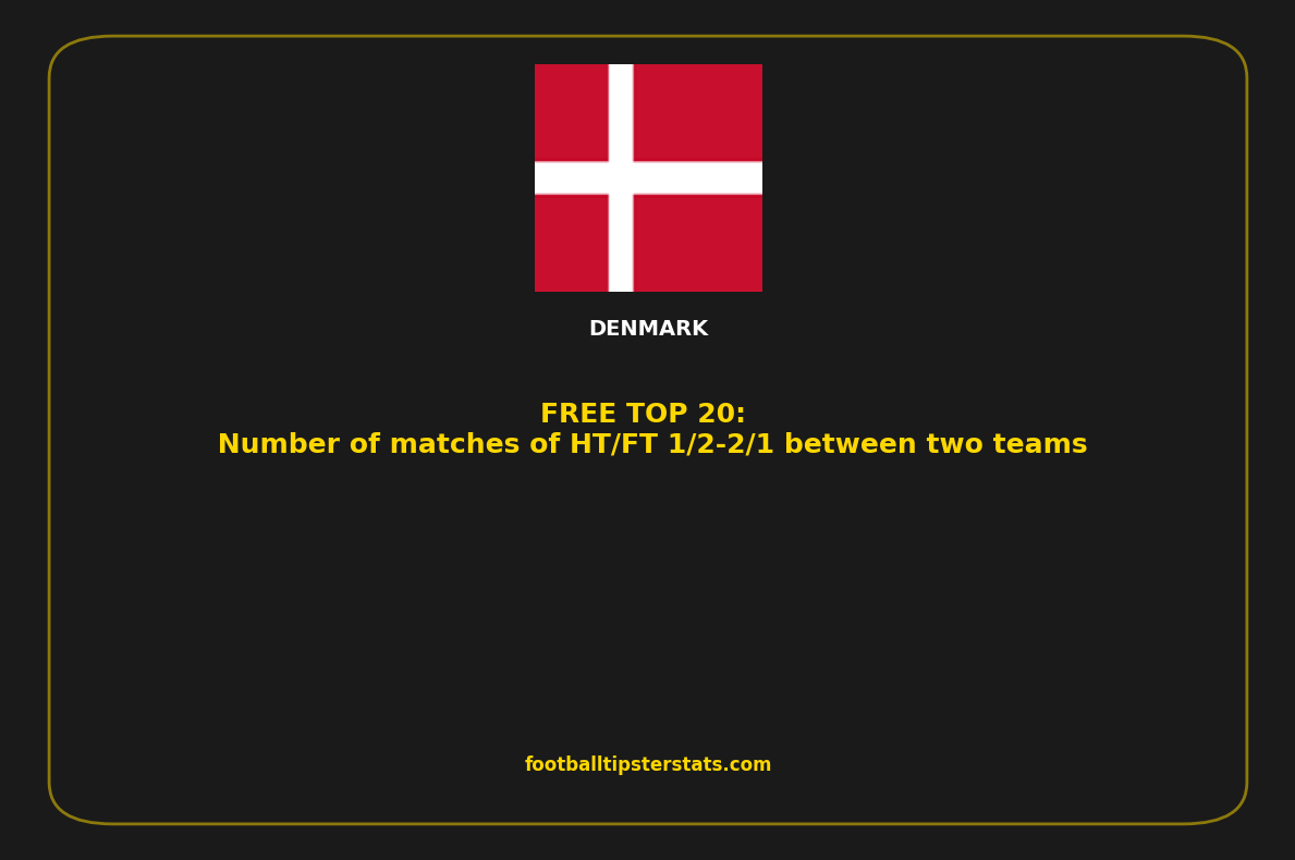 Here is a detailed overview of the teams with the highest number of matches of ht/ft 1/2-2/1 between two teams in Denmark. This list highlights clubs that consistently produce high-scoring games, based on recent statistical performance. Whether you're analyzing trends, preparing betting strategies, or simply exploring offensive team profiles, these numbers offer a clear insight into which teams generate the most goal-rich matches.