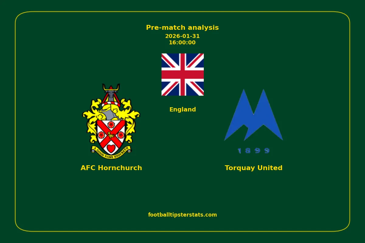 Analyzing the recent performance of AFC Hornchurch and Torquay United in England, we can derive insights that may inform future match predictions. By examining their individual game histories, head-to-head encounters, and overall trends, we can identify patterns that highlight strengths and weaknesses for both teams. This comprehensive review aims to provide a clearer understanding of their competitive dynamics and potential outcomes in upcoming fixtures.This pre-match analysis covers the upcoming fixture between AFC Hornchurch and Torquay United. Below you’ll find a detailed breakdown of both teams’ recent form, goal statistics, and head-to-head performance. These insights provide a clear picture of current momentum and can be valuable for match forecasting, tactical evaluation, or betting analysis. Please note that these suggestions are based on historical data and trends. While they provide valuable insights, actual match outcomes can be influenced by various unpredictable factors. Always consider multiple aspects before making any decisions based on these analyses.