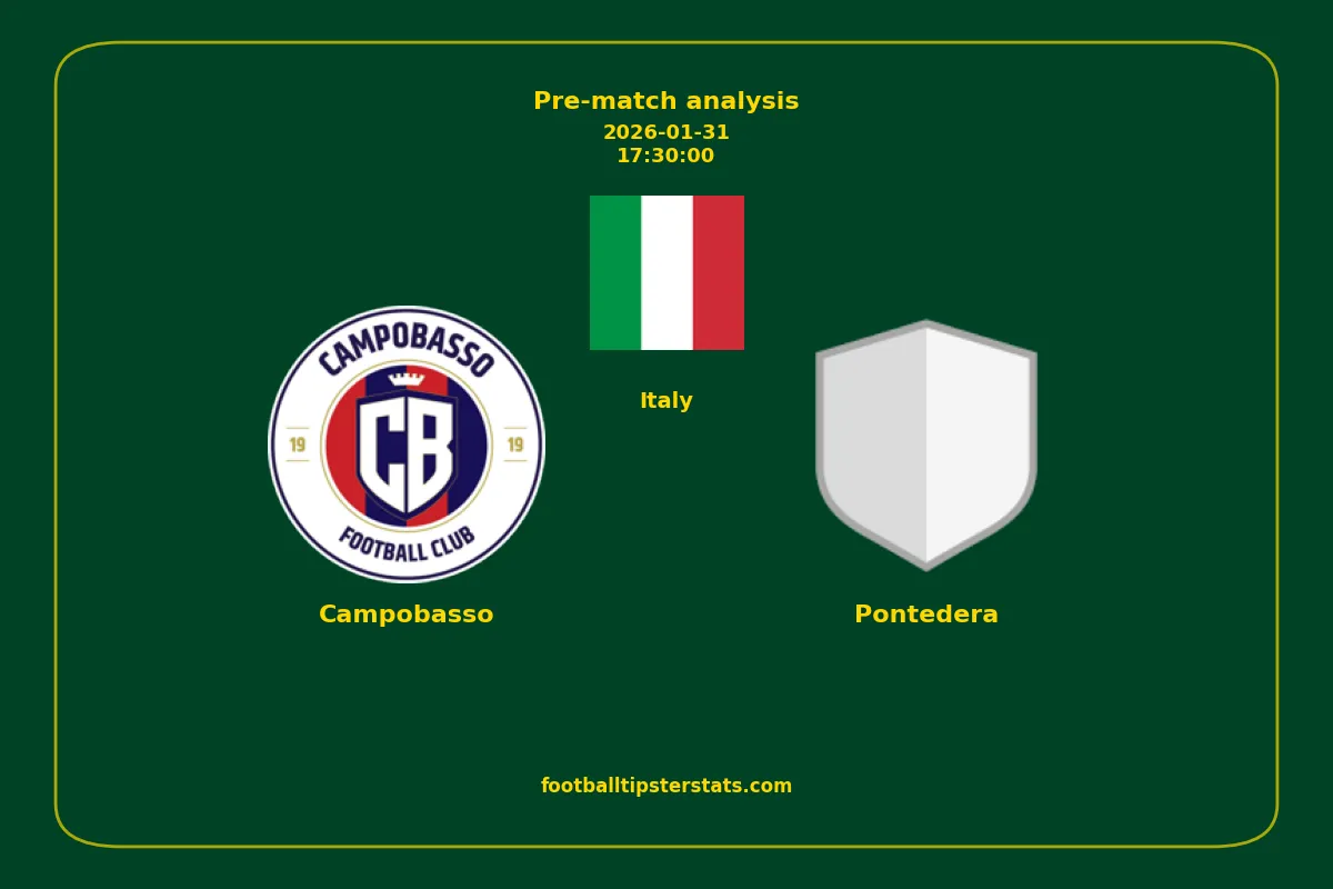 Analyzing the recent performance of Campobasso and Pontedera in Italy, we can derive insights that may inform future match predictions. By examining their individual game histories, head-to-head encounters, and overall trends, we can identify patterns that highlight strengths and weaknesses for both teams. This comprehensive review aims to provide a clearer understanding of their competitive dynamics and potential outcomes in upcoming fixtures.This pre-match analysis covers the upcoming fixture between Campobasso and Pontedera. Below you’ll find a detailed breakdown of both teams’ recent form, goal statistics, and head-to-head performance. These insights provide a clear picture of current momentum and can be valuable for match forecasting, tactical evaluation, or betting analysis. Please note that these suggestions are based on historical data and trends. While they provide valuable insights, actual match outcomes can be influenced by various unpredictable factors. Always consider multiple aspects before making any decisions based on these analyses.