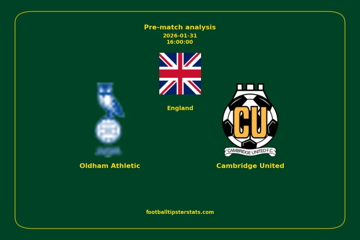 Analyzing the recent performance of Oldham Athletic and Cambridge United in England, we can derive insights that may inform future match predictions. By examining their individual game histories, head-to-head encounters, and overall trends, we can identify patterns that highlight strengths and weaknesses for both teams. This comprehensive review aims to provide a clearer understanding of their competitive dynamics and potential outcomes in upcoming fixtures.This pre-match analysis covers the upcoming fixture between Oldham Athletic and Cambridge United. Below you’ll find a detailed breakdown of both teams’ recent form, goal statistics, and head-to-head performance. These insights provide a clear picture of current momentum and can be valuable for match forecasting, tactical evaluation, or betting analysis. Please note that these suggestions are based on historical data and trends. While they provide valuable insights, actual match outcomes can be influenced by various unpredictable factors. Always consider multiple aspects before making any decisions based on these analyses.