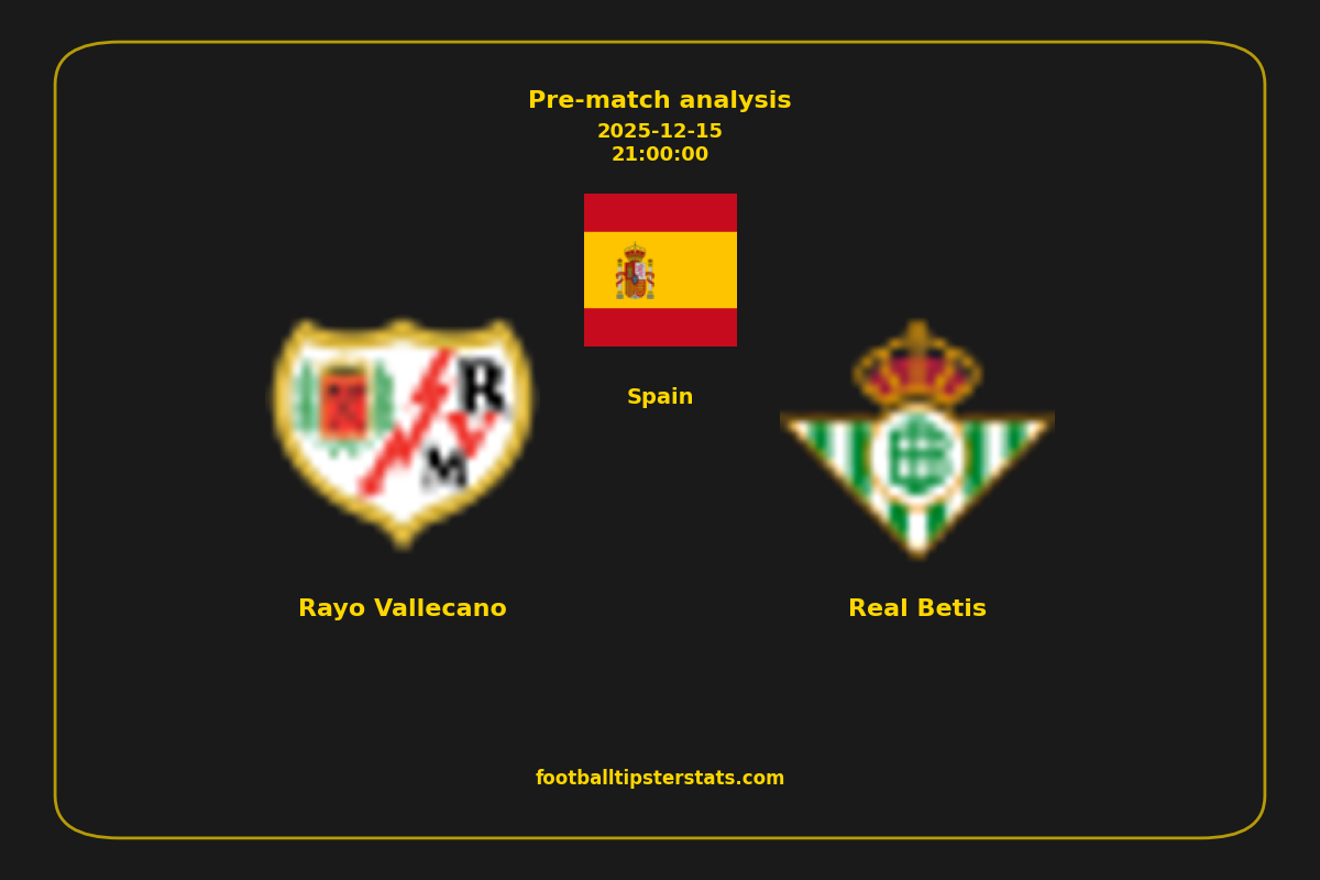 Analyzing the recent performance of Rayo Vallecano and Real Betis in Spain, we can derive insights that may inform future match predictions. By examining their individual game histories, head-to-head encounters, and overall trends, we can identify patterns that highlight strengths and weaknesses for both teams. This comprehensive review aims to provide a clearer understanding of their competitive dynamics and potential outcomes in upcoming fixtures.This pre-match analysis covers the upcoming fixture between Rayo Vallecano and Real Betis. Below you’ll find a detailed breakdown of both teams’ recent form, goal statistics, and head-to-head performance. These insights provide a clear picture of current momentum and can be valuable for match forecasting, tactical evaluation, or betting analysis. Please note that these suggestions are based on historical data and trends. While they provide valuable insights, actual match outcomes can be influenced by various unpredictable factors. Always consider multiple aspects before making any decisions based on these analyses.