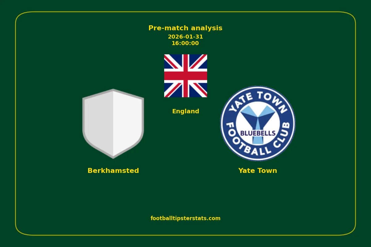 Analyzing the recent performance of Berkhamsted and Yate Town in England, we can derive insights that may inform future match predictions. By examining their individual game histories, head-to-head encounters, and overall trends, we can identify patterns that highlight strengths and weaknesses for both teams. This comprehensive review aims to provide a clearer understanding of their competitive dynamics and potential outcomes in upcoming fixtures.This pre-match analysis covers the upcoming fixture between Berkhamsted and Yate Town. Below you’ll find a detailed breakdown of both teams’ recent form, goal statistics, and head-to-head performance. These insights provide a clear picture of current momentum and can be valuable for match forecasting, tactical evaluation, or betting analysis. Please note that these suggestions are based on historical data and trends. While they provide valuable insights, actual match outcomes can be influenced by various unpredictable factors. Always consider multiple aspects before making any decisions based on these analyses.