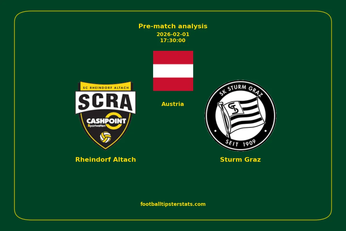 Analyzing the recent performance of Rheindorf Altach and Sturm Graz in Austria, we can derive insights that may inform future match predictions. By examining their individual game histories, head-to-head encounters, and overall trends, we can identify patterns that highlight strengths and weaknesses for both teams. This comprehensive review aims to provide a clearer understanding of their competitive dynamics and potential outcomes in upcoming fixtures.This pre-match analysis covers the upcoming fixture between Rheindorf Altach and Sturm Graz. Below you’ll find a detailed breakdown of both teams’ recent form, goal statistics, and head-to-head performance. These insights provide a clear picture of current momentum and can be valuable for match forecasting, tactical evaluation, or betting analysis. Please note that these suggestions are based on historical data and trends. While they provide valuable insights, actual match outcomes can be influenced by various unpredictable factors. Always consider multiple aspects before making any decisions based on these analyses.
