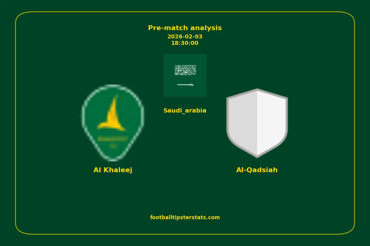 Analyzing the recent performance of Al Khaleej and Al-Qadsiah in Saudi_arabia, we can derive insights that may inform future match predictions. By examining their individual game histories, head-to-head encounters, and overall trends, we can identify patterns that highlight strengths and weaknesses for both teams. This comprehensive review aims to provide a clearer understanding of their competitive dynamics and potential outcomes in upcoming fixtures.This pre-match analysis covers the upcoming fixture between Al Khaleej and Al-Qadsiah. Below you’ll find a detailed breakdown of both teams’ recent form, goal statistics, and head-to-head performance. These insights provide a clear picture of current momentum and can be valuable for match forecasting, tactical evaluation, or betting analysis. Please note that these suggestions are based on historical data and trends. While they provide valuable insights, actual match outcomes can be influenced by various unpredictable factors. Always consider multiple aspects before making any decisions based on these analyses.