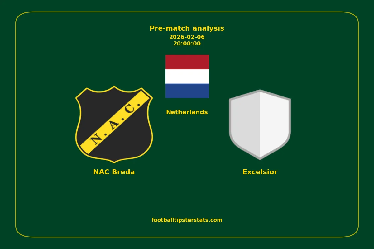 Analyzing the recent performance of NAC Breda and Excelsior in Netherlands, we can derive insights that may inform future match predictions. By examining their individual game histories, head-to-head encounters, and overall trends, we can identify patterns that highlight strengths and weaknesses for both teams. This comprehensive review aims to provide a clearer understanding of their competitive dynamics and potential outcomes in upcoming fixtures.This pre-match analysis covers the upcoming fixture between NAC Breda and Excelsior. Below you’ll find a detailed breakdown of both teams’ recent form, goal statistics, and head-to-head performance. These insights provide a clear picture of current momentum and can be valuable for match forecasting, tactical evaluation, or betting analysis. Please note that these suggestions are based on historical data and trends. While they provide valuable insights, actual match outcomes can be influenced by various unpredictable factors. Always consider multiple aspects before making any decisions based on these analyses.