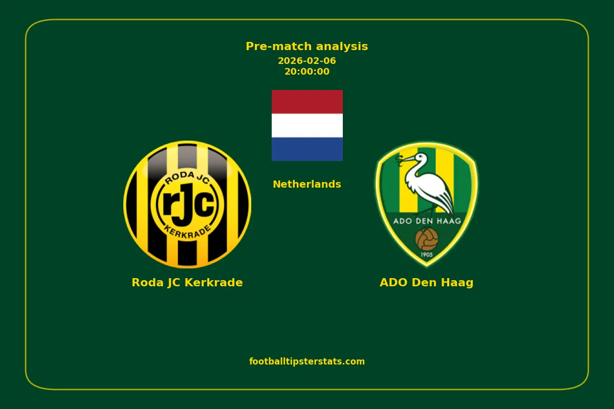 Analyzing the recent performance of Roda JC Kerkrade and ADO Den Haag in Netherlands, we can derive insights that may inform future match predictions. By examining their individual game histories, head-to-head encounters, and overall trends, we can identify patterns that highlight strengths and weaknesses for both teams. This comprehensive review aims to provide a clearer understanding of their competitive dynamics and potential outcomes in upcoming fixtures.This pre-match analysis covers the upcoming fixture between Roda JC Kerkrade and ADO Den Haag. Below you’ll find a detailed breakdown of both teams’ recent form, goal statistics, and head-to-head performance. These insights provide a clear picture of current momentum and can be valuable for match forecasting, tactical evaluation, or betting analysis. Please note that these suggestions are based on historical data and trends. While they provide valuable insights, actual match outcomes can be influenced by various unpredictable factors. Always consider multiple aspects before making any decisions based on these analyses.