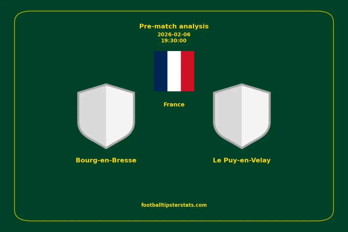 Analyzing the recent performance of Bourg-en-Bresse and Le Puy-en-Velay in France, we can derive insights that may inform future match predictions. By examining their individual game histories, head-to-head encounters, and overall trends, we can identify patterns that highlight strengths and weaknesses for both teams. This comprehensive review aims to provide a clearer understanding of their competitive dynamics and potential outcomes in upcoming fixtures.This pre-match analysis covers the upcoming fixture between Bourg-en-Bresse and Le Puy-en-Velay. Below you’ll find a detailed breakdown of both teams’ recent form, goal statistics, and head-to-head performance. These insights provide a clear picture of current momentum and can be valuable for match forecasting, tactical evaluation, or betting analysis. Please note that these suggestions are based on historical data and trends. While they provide valuable insights, actual match outcomes can be influenced by various unpredictable factors. Always consider multiple aspects before making any decisions based on these analyses.
