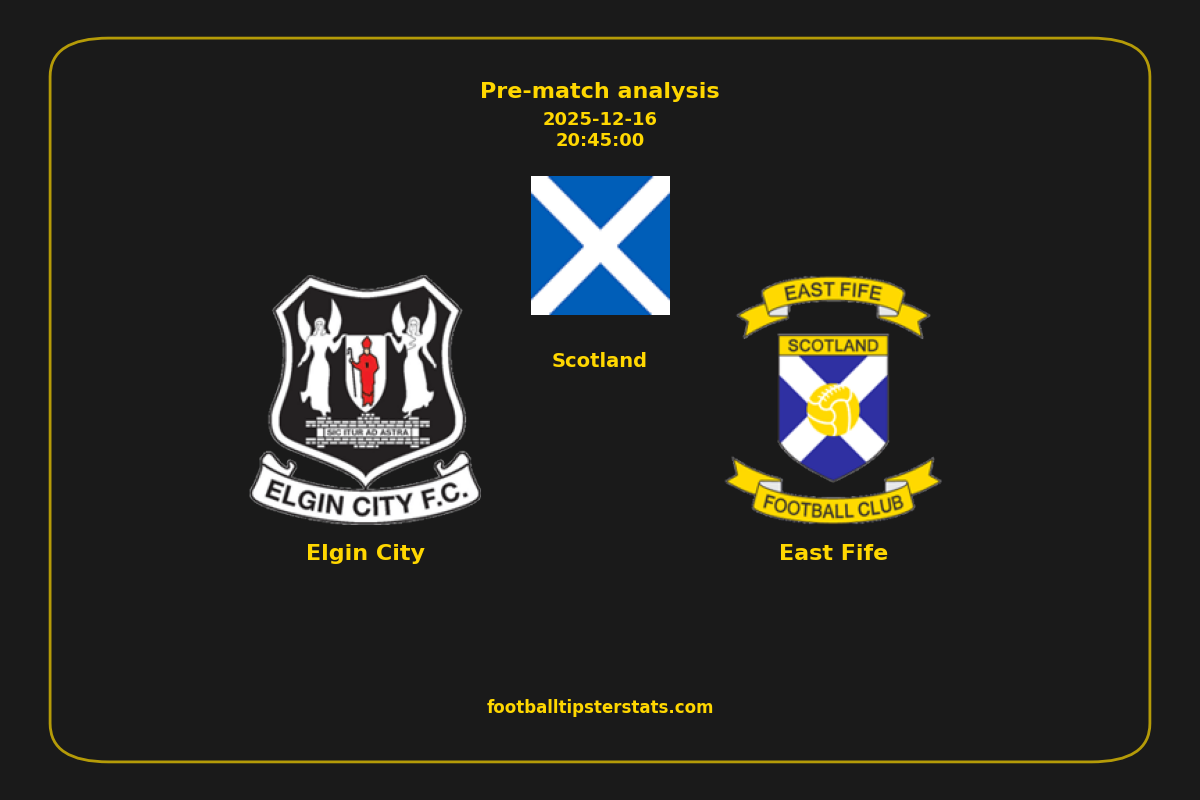 Analyzing the recent performance of Elgin City and East Fife in Scotland, we can derive insights that may inform future match predictions. By examining their individual game histories, head-to-head encounters, and overall trends, we can identify patterns that highlight strengths and weaknesses for both teams. This comprehensive review aims to provide a clearer understanding of their competitive dynamics and potential outcomes in upcoming fixtures.This pre-match analysis covers the upcoming fixture between Elgin City and East Fife. Below you’ll find a detailed breakdown of both teams’ recent form, goal statistics, and head-to-head performance. These insights provide a clear picture of current momentum and can be valuable for match forecasting, tactical evaluation, or betting analysis. Please note that these suggestions are based on historical data and trends. While they provide valuable insights, actual match outcomes can be influenced by various unpredictable factors. Always consider multiple aspects before making any decisions based on these analyses.