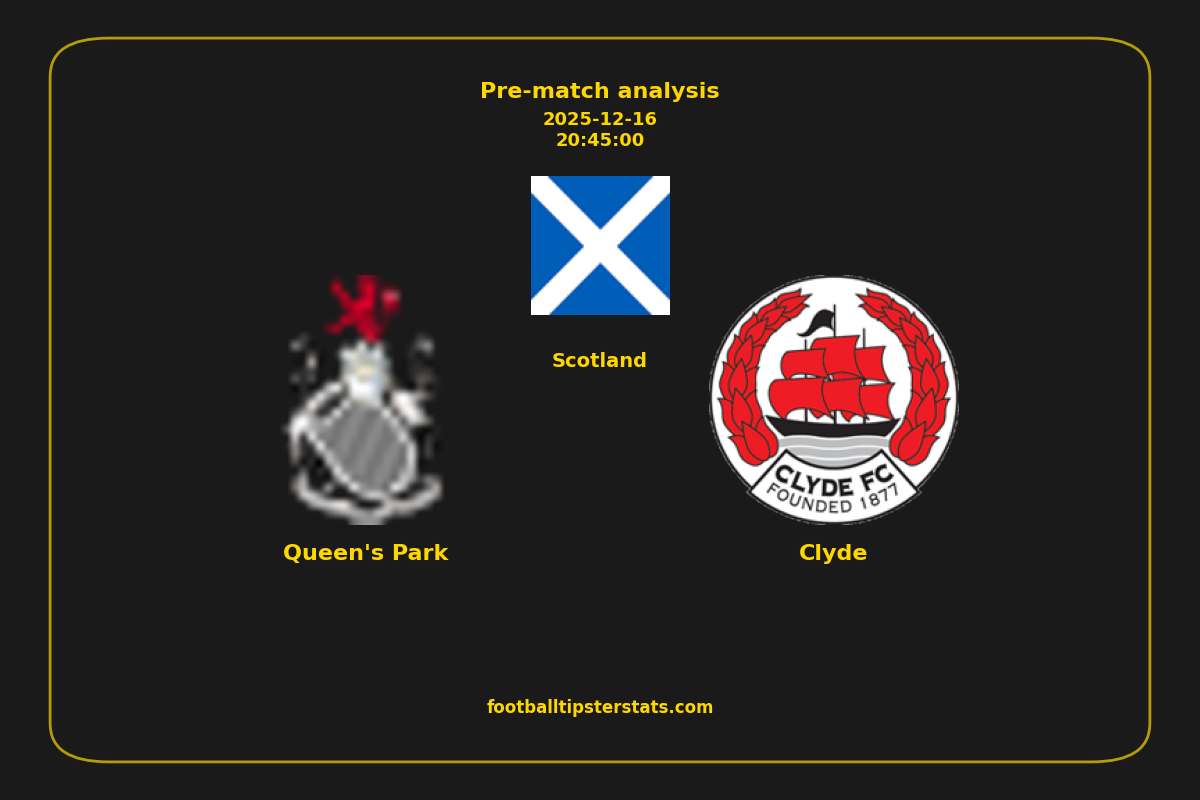 Analyzing the recent performance of Queen's Park and Clyde in Scotland, we can derive insights that may inform future match predictions. By examining their individual game histories, head-to-head encounters, and overall trends, we can identify patterns that highlight strengths and weaknesses for both teams. This comprehensive review aims to provide a clearer understanding of their competitive dynamics and potential outcomes in upcoming fixtures.This pre-match analysis covers the upcoming fixture between Queen's Park and Clyde. Below you’ll find a detailed breakdown of both teams’ recent form, goal statistics, and head-to-head performance. These insights provide a clear picture of current momentum and can be valuable for match forecasting, tactical evaluation, or betting analysis. Please note that these suggestions are based on historical data and trends. While they provide valuable insights, actual match outcomes can be influenced by various unpredictable factors. Always consider multiple aspects before making any decisions based on these analyses.