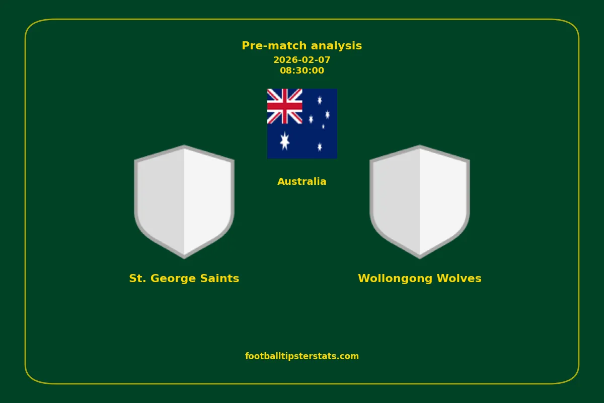 Analyzing the recent performance of St. George Saints and Wollongong Wolves in Australia, we can derive insights that may inform future match predictions. By examining their individual game histories, head-to-head encounters, and overall trends, we can identify patterns that highlight strengths and weaknesses for both teams. This comprehensive review aims to provide a clearer understanding of their competitive dynamics and potential outcomes in upcoming fixtures.This pre-match analysis covers the upcoming fixture between St. George Saints and Wollongong Wolves. Below you’ll find a detailed breakdown of both teams’ recent form, goal statistics, and head-to-head performance. These insights provide a clear picture of current momentum and can be valuable for match forecasting, tactical evaluation, or betting analysis. Please note that these suggestions are based on historical data and trends. While they provide valuable insights, actual match outcomes can be influenced by various unpredictable factors. Always consider multiple aspects before making any decisions based on these analyses.