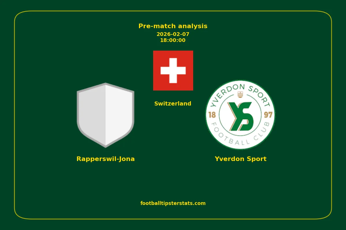 Analyzing the recent performance of Rapperswil-Jona and Yverdon Sport in Switzerland, we can derive insights that may inform future match predictions. By examining their individual game histories, head-to-head encounters, and overall trends, we can identify patterns that highlight strengths and weaknesses for both teams. This comprehensive review aims to provide a clearer understanding of their competitive dynamics and potential outcomes in upcoming fixtures.This pre-match analysis covers the upcoming fixture between Rapperswil-Jona and Yverdon Sport. Below you’ll find a detailed breakdown of both teams’ recent form, goal statistics, and head-to-head performance. These insights provide a clear picture of current momentum and can be valuable for match forecasting, tactical evaluation, or betting analysis. Please note that these suggestions are based on historical data and trends. While they provide valuable insights, actual match outcomes can be influenced by various unpredictable factors. Always consider multiple aspects before making any decisions based on these analyses.