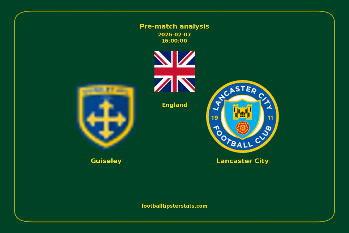 Analyzing the recent performance of Guiseley and Lancaster City in England, we can derive insights that may inform future match predictions. By examining their individual game histories, head-to-head encounters, and overall trends, we can identify patterns that highlight strengths and weaknesses for both teams. This comprehensive review aims to provide a clearer understanding of their competitive dynamics and potential outcomes in upcoming fixtures.This pre-match analysis covers the upcoming fixture between Guiseley and Lancaster City. Below you’ll find a detailed breakdown of both teams’ recent form, goal statistics, and head-to-head performance. These insights provide a clear picture of current momentum and can be valuable for match forecasting, tactical evaluation, or betting analysis. Please note that these suggestions are based on historical data and trends. While they provide valuable insights, actual match outcomes can be influenced by various unpredictable factors. Always consider multiple aspects before making any decisions based on these analyses.