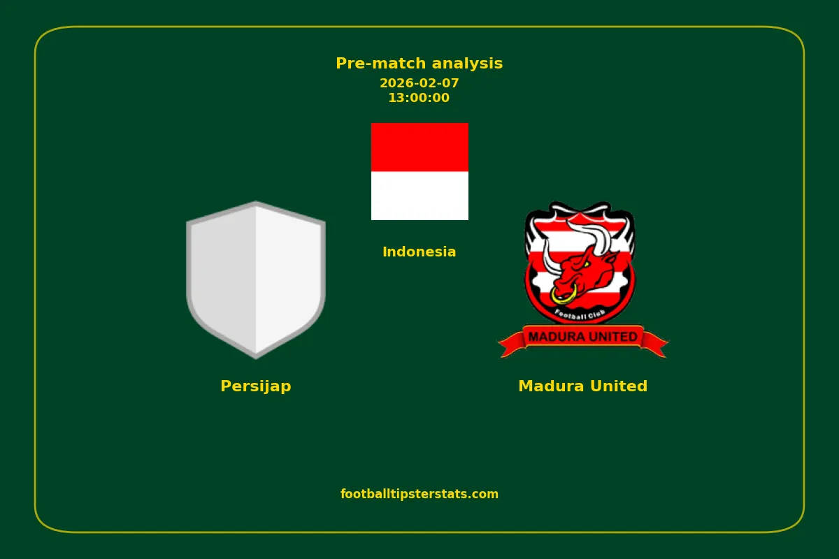 Analyzing the recent performance of Persijap and Madura United in Indonesia, we can derive insights that may inform future match predictions. By examining their individual game histories, head-to-head encounters, and overall trends, we can identify patterns that highlight strengths and weaknesses for both teams. This comprehensive review aims to provide a clearer understanding of their competitive dynamics and potential outcomes in upcoming fixtures.This pre-match analysis covers the upcoming fixture between Persijap and Madura United. Below you’ll find a detailed breakdown of both teams’ recent form, goal statistics, and head-to-head performance. These insights provide a clear picture of current momentum and can be valuable for match forecasting, tactical evaluation, or betting analysis. Please note that these suggestions are based on historical data and trends. While they provide valuable insights, actual match outcomes can be influenced by various unpredictable factors. Always consider multiple aspects before making any decisions based on these analyses.