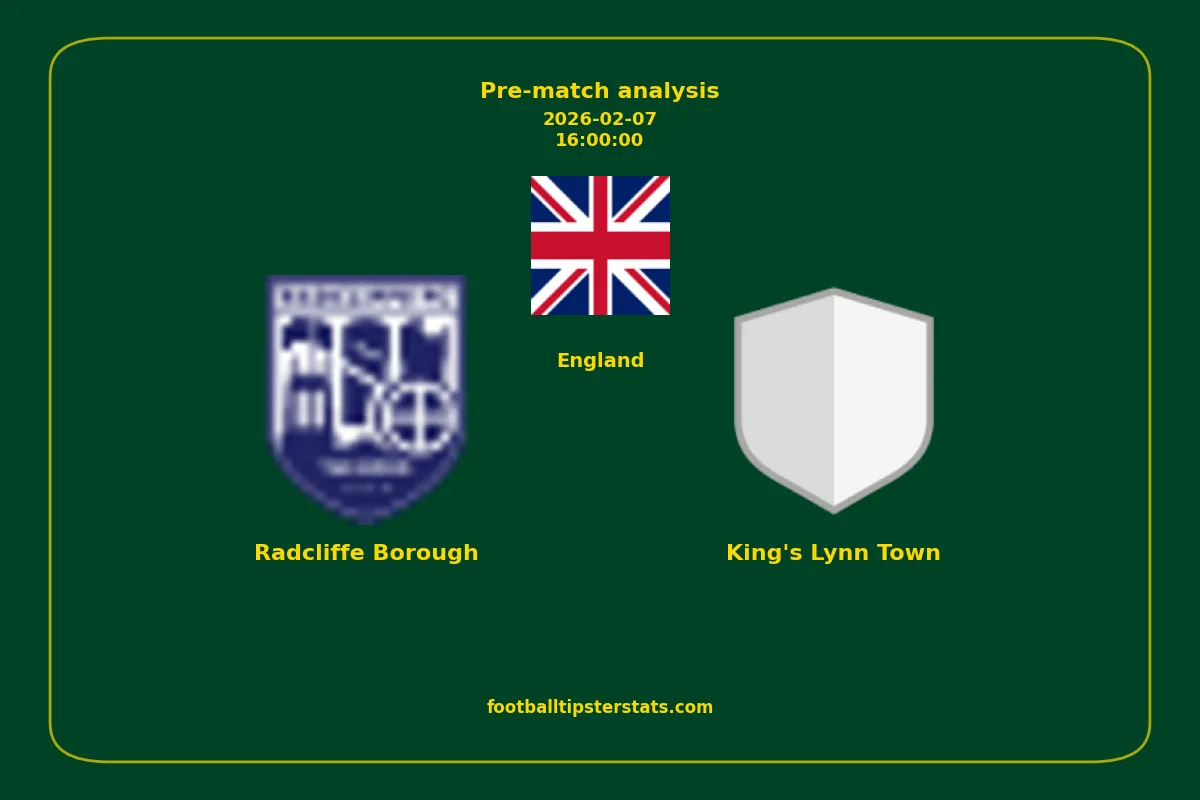 Analyzing the recent performance of Radcliffe Borough and King's Lynn Town in England, we can derive insights that may inform future match predictions. By examining their individual game histories, head-to-head encounters, and overall trends, we can identify patterns that highlight strengths and weaknesses for both teams. This comprehensive review aims to provide a clearer understanding of their competitive dynamics and potential outcomes in upcoming fixtures.This pre-match analysis covers the upcoming fixture between Radcliffe Borough and King's Lynn Town. Below you’ll find a detailed breakdown of both teams’ recent form, goal statistics, and head-to-head performance. These insights provide a clear picture of current momentum and can be valuable for match forecasting, tactical evaluation, or betting analysis. Please note that these suggestions are based on historical data and trends. While they provide valuable insights, actual match outcomes can be influenced by various unpredictable factors. Always consider multiple aspects before making any decisions based on these analyses.