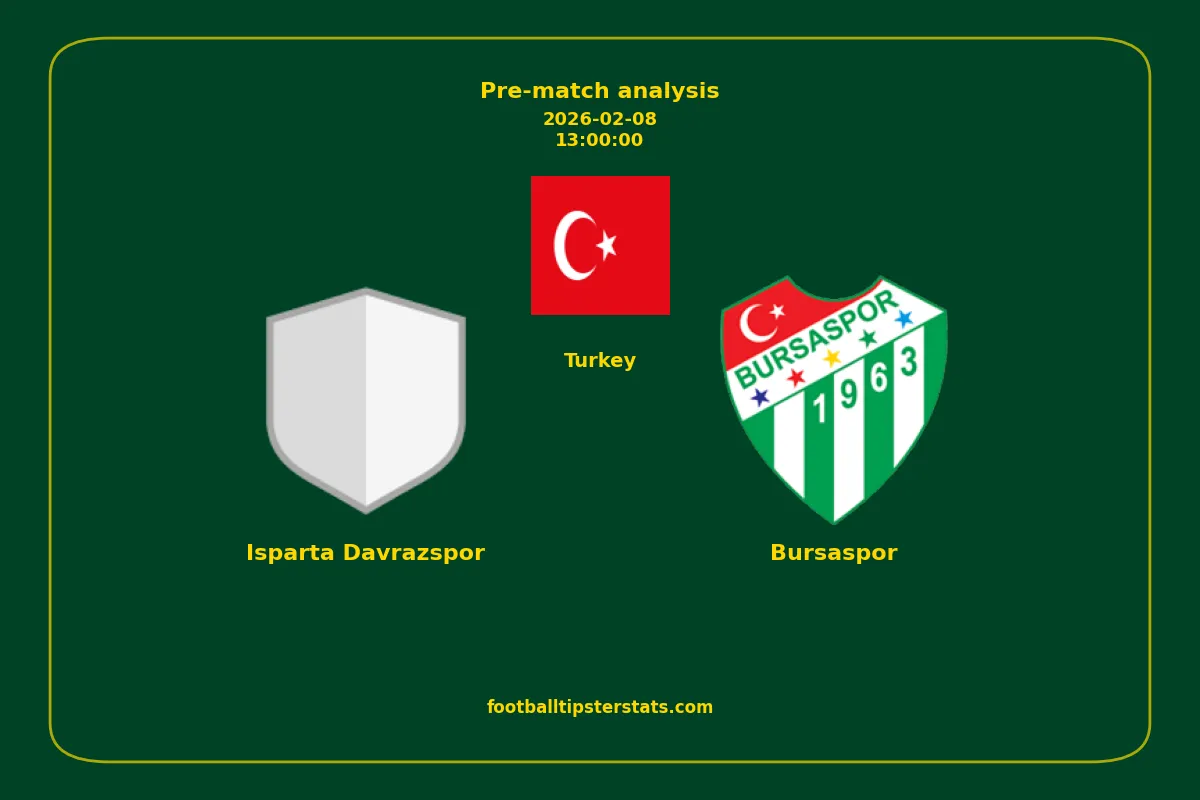 Analyzing the recent performance of Isparta Davrazspor and Bursaspor in Turkey, we can derive insights that may inform future match predictions. By examining their individual game histories, head-to-head encounters, and overall trends, we can identify patterns that highlight strengths and weaknesses for both teams. This comprehensive review aims to provide a clearer understanding of their competitive dynamics and potential outcomes in upcoming fixtures.This pre-match analysis covers the upcoming fixture between Isparta Davrazspor and Bursaspor. Below you’ll find a detailed breakdown of both teams’ recent form, goal statistics, and head-to-head performance. These insights provide a clear picture of current momentum and can be valuable for match forecasting, tactical evaluation, or betting analysis. Please note that these suggestions are based on historical data and trends. While they provide valuable insights, actual match outcomes can be influenced by various unpredictable factors. Always consider multiple aspects before making any decisions based on these analyses.