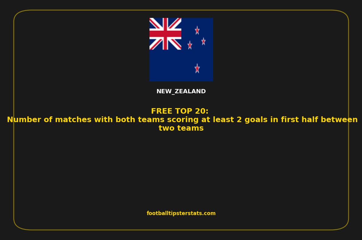 Here is a detailed overview of the teams with the highest number of matches with both teams scoring at least 2 goals in first half between two teams in New Zealand. This list highlights clubs that consistently produce high-scoring games, based on recent statistical performance. Whether you're analyzing trends, preparing betting strategies, or simply exploring offensive team profiles, these numbers offer a clear insight into which teams generate the most goal-rich matches.