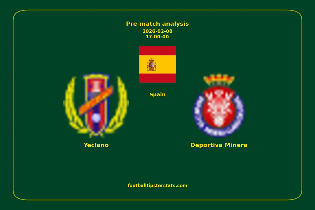 Analyzing the recent performance of Yeclano and Deportiva Minera in Spain, we can derive insights that may inform future match predictions. By examining their individual game histories, head-to-head encounters, and overall trends, we can identify patterns that highlight strengths and weaknesses for both teams. This comprehensive review aims to provide a clearer understanding of their competitive dynamics and potential outcomes in upcoming fixtures.This pre-match analysis covers the upcoming fixture between Yeclano and Deportiva Minera. Below you’ll find a detailed breakdown of both teams’ recent form, goal statistics, and head-to-head performance. These insights provide a clear picture of current momentum and can be valuable for match forecasting, tactical evaluation, or betting analysis. Please note that these suggestions are based on historical data and trends. While they provide valuable insights, actual match outcomes can be influenced by various unpredictable factors. Always consider multiple aspects before making any decisions based on these analyses.