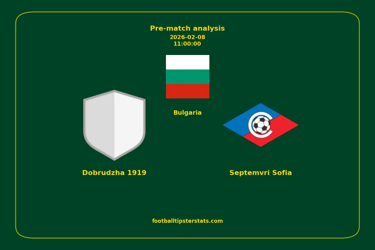 Analyzing the recent performance of Dobrudzha 1919 and Septemvri Sofia in Bulgaria, we can derive insights that may inform future match predictions. By examining their individual game histories, head-to-head encounters, and overall trends, we can identify patterns that highlight strengths and weaknesses for both teams. This comprehensive review aims to provide a clearer understanding of their competitive dynamics and potential outcomes in upcoming fixtures.This pre-match analysis covers the upcoming fixture between Dobrudzha 1919 and Septemvri Sofia. Below you’ll find a detailed breakdown of both teams’ recent form, goal statistics, and head-to-head performance. These insights provide a clear picture of current momentum and can be valuable for match forecasting, tactical evaluation, or betting analysis. Please note that these suggestions are based on historical data and trends. While they provide valuable insights, actual match outcomes can be influenced by various unpredictable factors. Always consider multiple aspects before making any decisions based on these analyses.