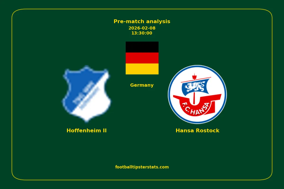 Analyzing the recent performance of Hoffenheim II and Hansa Rostock in Germany, we can derive insights that may inform future match predictions. By examining their individual game histories, head-to-head encounters, and overall trends, we can identify patterns that highlight strengths and weaknesses for both teams. This comprehensive review aims to provide a clearer understanding of their competitive dynamics and potential outcomes in upcoming fixtures.This pre-match analysis covers the upcoming fixture between Hoffenheim II and Hansa Rostock. Below you’ll find a detailed breakdown of both teams’ recent form, goal statistics, and head-to-head performance. These insights provide a clear picture of current momentum and can be valuable for match forecasting, tactical evaluation, or betting analysis. Please note that these suggestions are based on historical data and trends. While they provide valuable insights, actual match outcomes can be influenced by various unpredictable factors. Always consider multiple aspects before making any decisions based on these analyses.