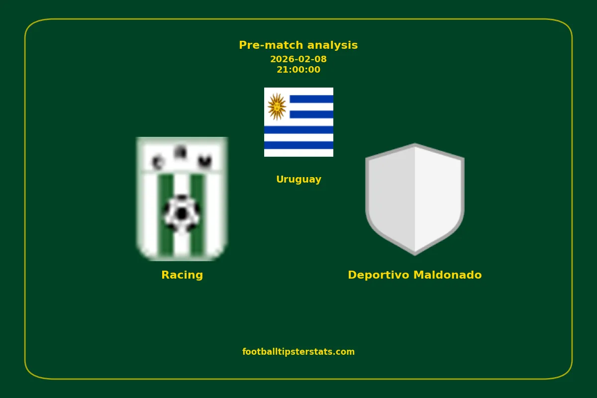 Analyzing the recent performance of Racing and Deportivo Maldonado in Uruguay, we can derive insights that may inform future match predictions. By examining their individual game histories, head-to-head encounters, and overall trends, we can identify patterns that highlight strengths and weaknesses for both teams. This comprehensive review aims to provide a clearer understanding of their competitive dynamics and potential outcomes in upcoming fixtures.This pre-match analysis covers the upcoming fixture between Racing and Deportivo Maldonado. Below you’ll find a detailed breakdown of both teams’ recent form, goal statistics, and head-to-head performance. These insights provide a clear picture of current momentum and can be valuable for match forecasting, tactical evaluation, or betting analysis. Please note that these suggestions are based on historical data and trends. While they provide valuable insights, actual match outcomes can be influenced by various unpredictable factors. Always consider multiple aspects before making any decisions based on these analyses.