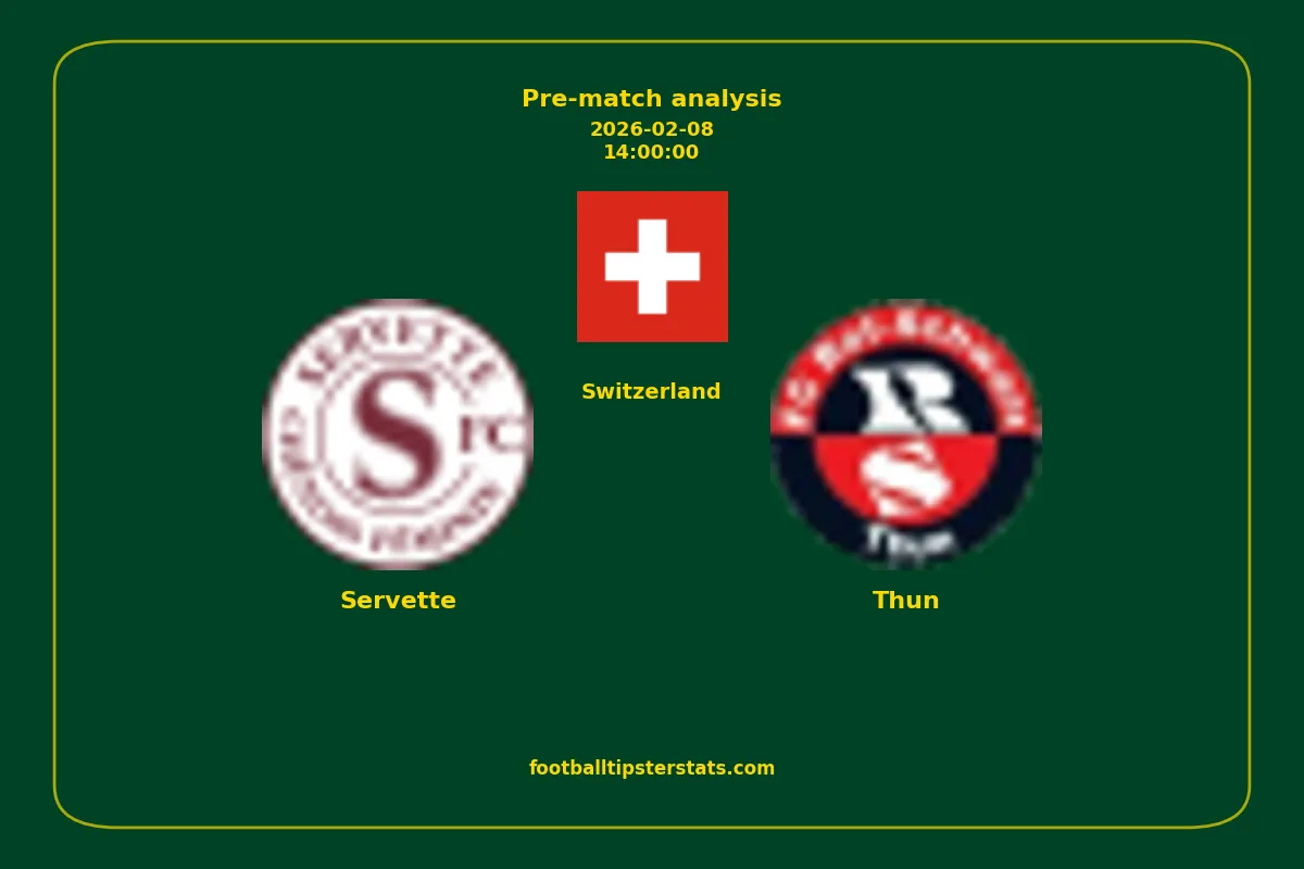 Analyzing the recent performance of Servette and Thun in Switzerland, we can derive insights that may inform future match predictions. By examining their individual game histories, head-to-head encounters, and overall trends, we can identify patterns that highlight strengths and weaknesses for both teams. This comprehensive review aims to provide a clearer understanding of their competitive dynamics and potential outcomes in upcoming fixtures.This pre-match analysis covers the upcoming fixture between Servette and Thun. Below you’ll find a detailed breakdown of both teams’ recent form, goal statistics, and head-to-head performance. These insights provide a clear picture of current momentum and can be valuable for match forecasting, tactical evaluation, or betting analysis. Please note that these suggestions are based on historical data and trends. While they provide valuable insights, actual match outcomes can be influenced by various unpredictable factors. Always consider multiple aspects before making any decisions based on these analyses.