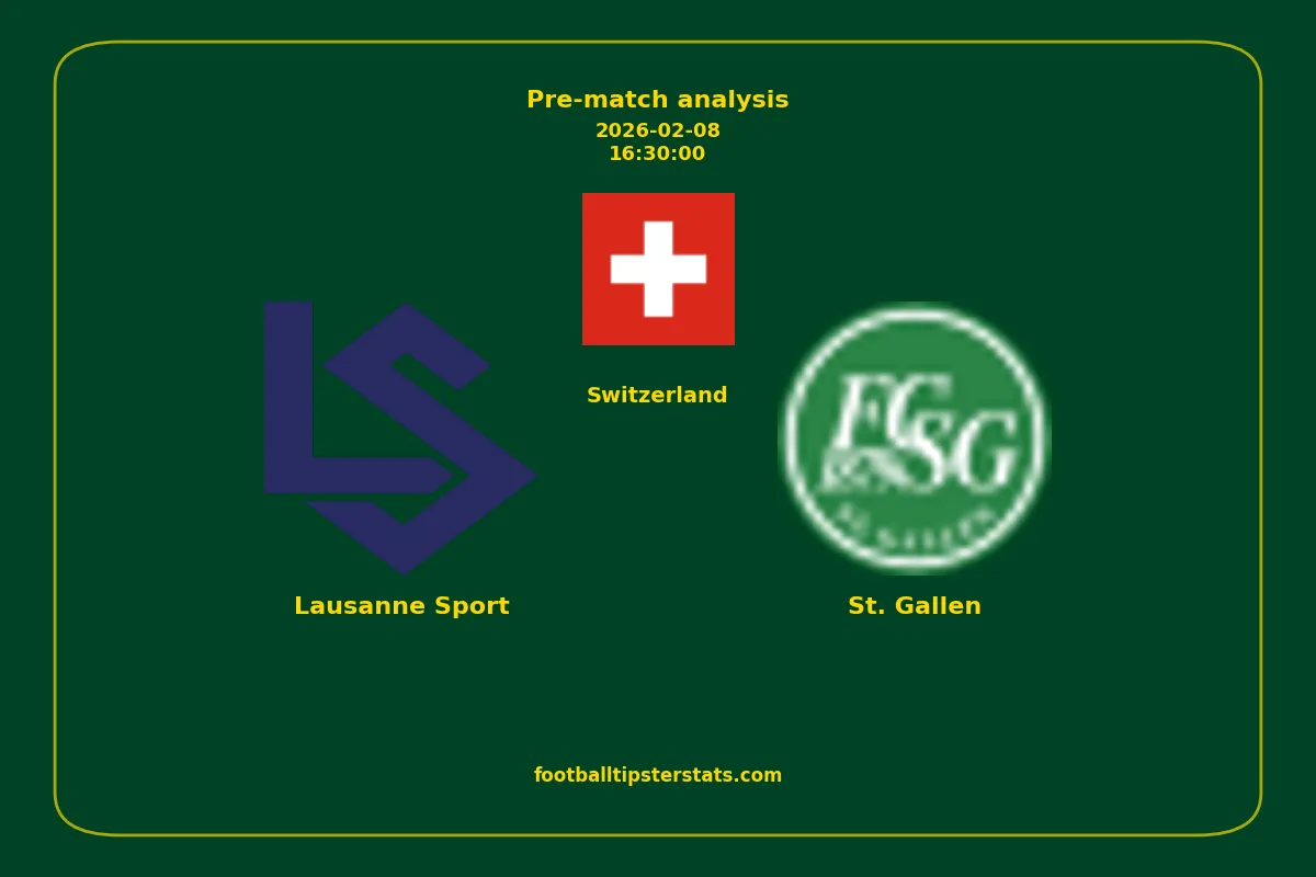 Analyzing the recent performance of Lausanne Sport and St. Gallen in Switzerland, we can derive insights that may inform future match predictions. By examining their individual game histories, head-to-head encounters, and overall trends, we can identify patterns that highlight strengths and weaknesses for both teams. This comprehensive review aims to provide a clearer understanding of their competitive dynamics and potential outcomes in upcoming fixtures.This pre-match analysis covers the upcoming fixture between Lausanne Sport and St. Gallen. Below you’ll find a detailed breakdown of both teams’ recent form, goal statistics, and head-to-head performance. These insights provide a clear picture of current momentum and can be valuable for match forecasting, tactical evaluation, or betting analysis. Please note that these suggestions are based on historical data and trends. While they provide valuable insights, actual match outcomes can be influenced by various unpredictable factors. Always consider multiple aspects before making any decisions based on these analyses.
