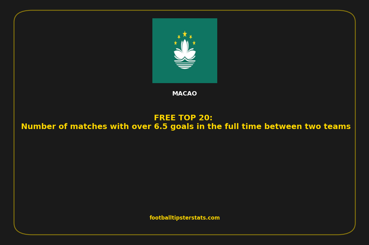 Here is a detailed overview of the teams with the highest number of matches with over 6.5 goals in the full time between two teams in Macao. This list highlights clubs that consistently produce high-scoring games, based on recent statistical performance. Whether you're analyzing trends, preparing betting strategies, or simply exploring offensive team profiles, these numbers offer a clear insight into which teams generate the most goal-rich matches.