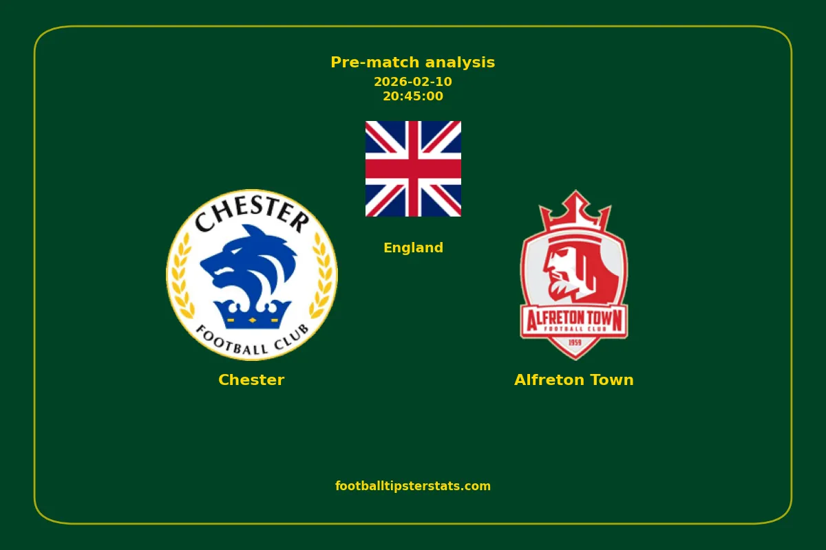Analyzing the recent performance of Chester and Alfreton Town in England, we can derive insights that may inform future match predictions. By examining their individual game histories, head-to-head encounters, and overall trends, we can identify patterns that highlight strengths and weaknesses for both teams. This comprehensive review aims to provide a clearer understanding of their competitive dynamics and potential outcomes in upcoming fixtures.This pre-match analysis covers the upcoming fixture between Chester and Alfreton Town. Below you’ll find a detailed breakdown of both teams’ recent form, goal statistics, and head-to-head performance. These insights provide a clear picture of current momentum and can be valuable for match forecasting, tactical evaluation, or betting analysis. Please note that these suggestions are based on historical data and trends. While they provide valuable insights, actual match outcomes can be influenced by various unpredictable factors. Always consider multiple aspects before making any decisions based on these analyses.