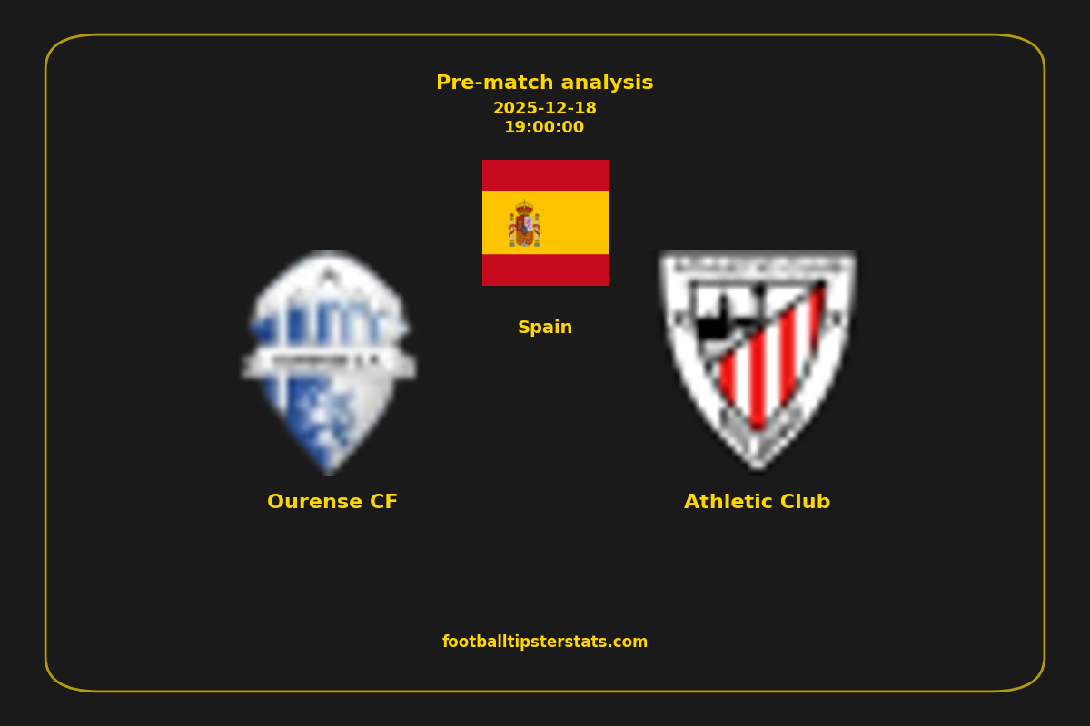 Analyzing the recent performance of Ourense CF and Athletic Club in Spain, we can derive insights that may inform future match predictions. By examining their individual game histories, head-to-head encounters, and overall trends, we can identify patterns that highlight strengths and weaknesses for both teams. This comprehensive review aims to provide a clearer understanding of their competitive dynamics and potential outcomes in upcoming fixtures.This pre-match analysis covers the upcoming fixture between Ourense CF and Athletic Club. Below you’ll find a detailed breakdown of both teams’ recent form, goal statistics, and head-to-head performance. These insights provide a clear picture of current momentum and can be valuable for match forecasting, tactical evaluation, or betting analysis. Please note that these suggestions are based on historical data and trends. While they provide valuable insights, actual match outcomes can be influenced by various unpredictable factors. Always consider multiple aspects before making any decisions based on these analyses.