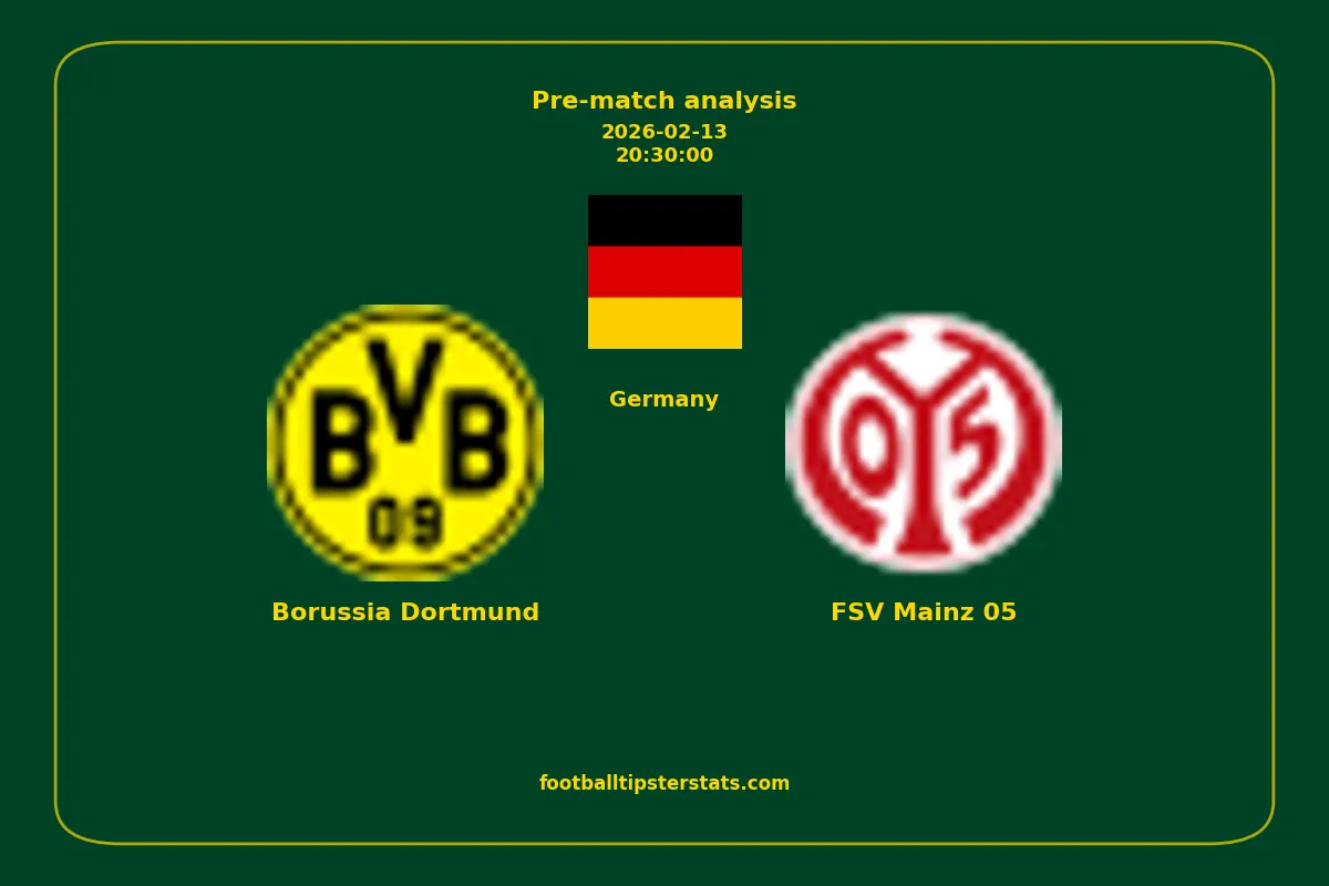 Analyzing the recent performance of Borussia Dortmund and FSV Mainz 05 in Germany, we can derive insights that may inform future match predictions. By examining their individual game histories, head-to-head encounters, and overall trends, we can identify patterns that highlight strengths and weaknesses for both teams. This comprehensive review aims to provide a clearer understanding of their competitive dynamics and potential outcomes in upcoming fixtures.This pre-match analysis covers the upcoming fixture between Borussia Dortmund and FSV Mainz 05. Below you’ll find a detailed breakdown of both teams’ recent form, goal statistics, and head-to-head performance. These insights provide a clear picture of current momentum and can be valuable for match forecasting, tactical evaluation, or betting analysis. Please note that these suggestions are based on historical data and trends. While they provide valuable insights, actual match outcomes can be influenced by various unpredictable factors. Always consider multiple aspects before making any decisions based on these analyses.