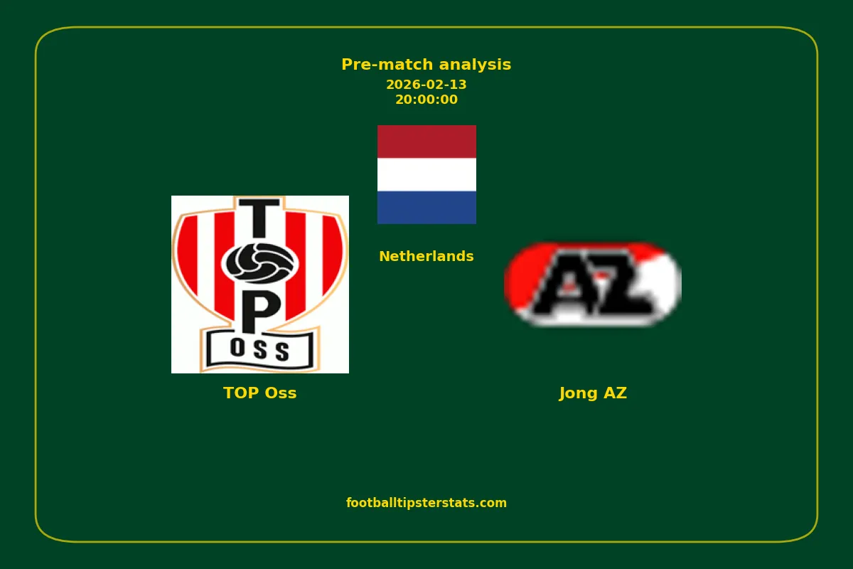 Analyzing the recent performance of TOP Oss and Jong AZ in Netherlands, we can derive insights that may inform future match predictions. By examining their individual game histories, head-to-head encounters, and overall trends, we can identify patterns that highlight strengths and weaknesses for both teams. This comprehensive review aims to provide a clearer understanding of their competitive dynamics and potential outcomes in upcoming fixtures.This pre-match analysis covers the upcoming fixture between TOP Oss and Jong AZ. Below you’ll find a detailed breakdown of both teams’ recent form, goal statistics, and head-to-head performance. These insights provide a clear picture of current momentum and can be valuable for match forecasting, tactical evaluation, or betting analysis. Please note that these suggestions are based on historical data and trends. While they provide valuable insights, actual match outcomes can be influenced by various unpredictable factors. Always consider multiple aspects before making any decisions based on these analyses.